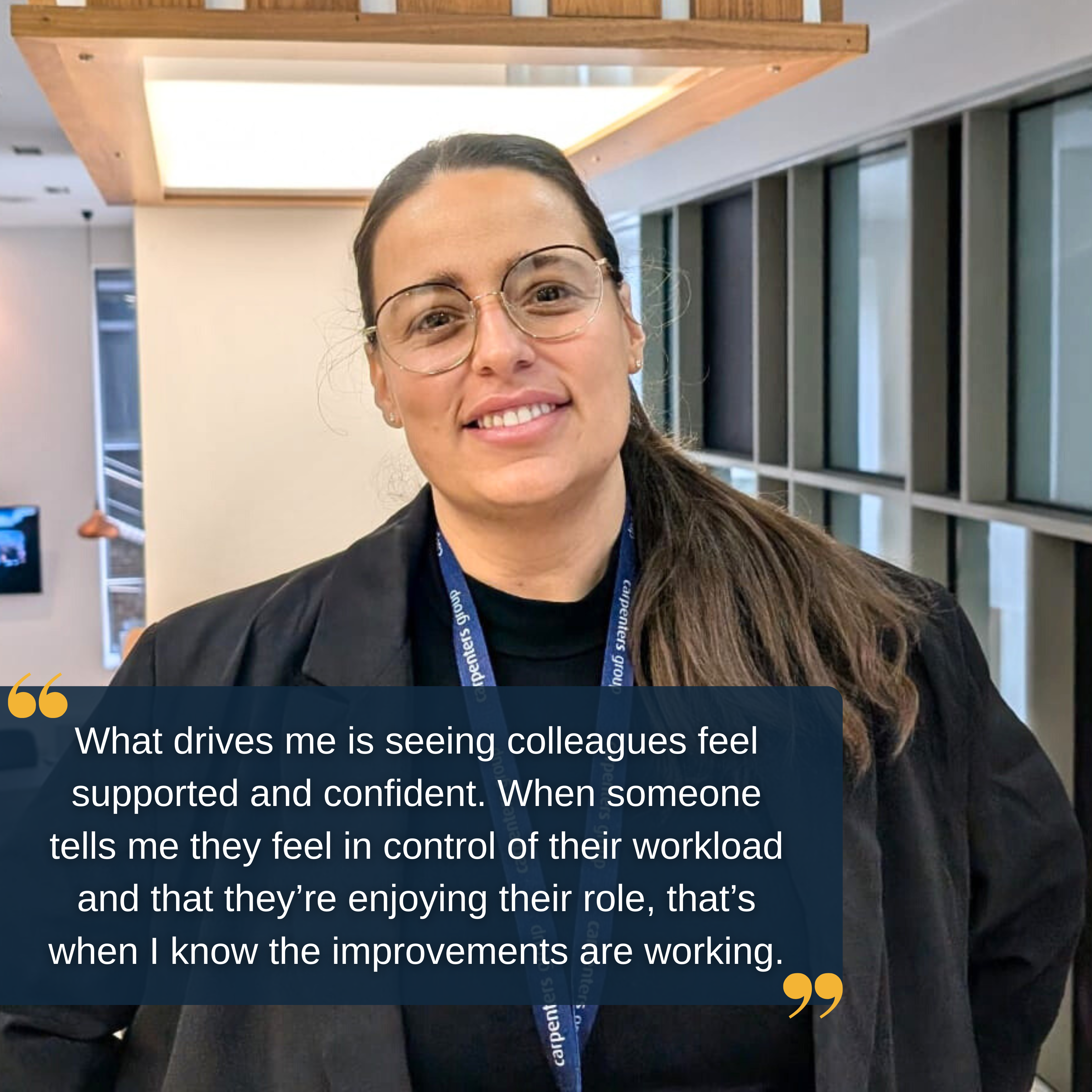 “What drives me is seeing colleagues feel supported and confident. When someone tells me they feel in control of their workload and that they’re enjoying their role, that’s when I know the improvements are working.”
